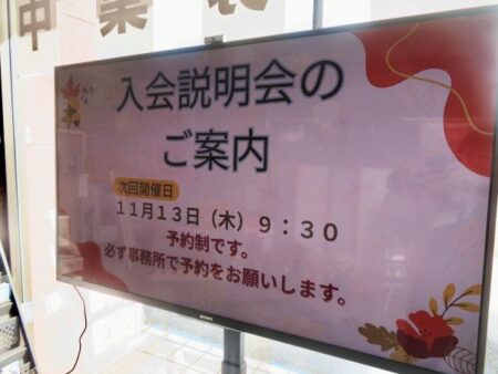 センターに、ご来所いただくお客さまや会員さんへのご案内をTV画面を設置してインフォメーションコーナーとしました。