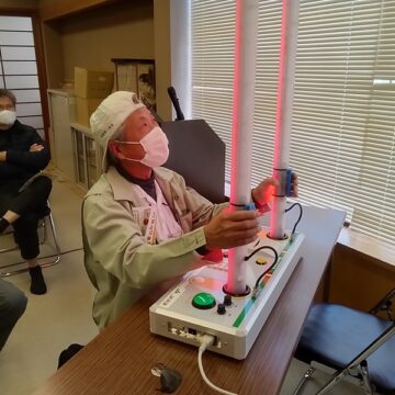 体験コーナーでは、判断速度を測定する機器を使用し、ご自身の反応速度を実際に確認していただきました。